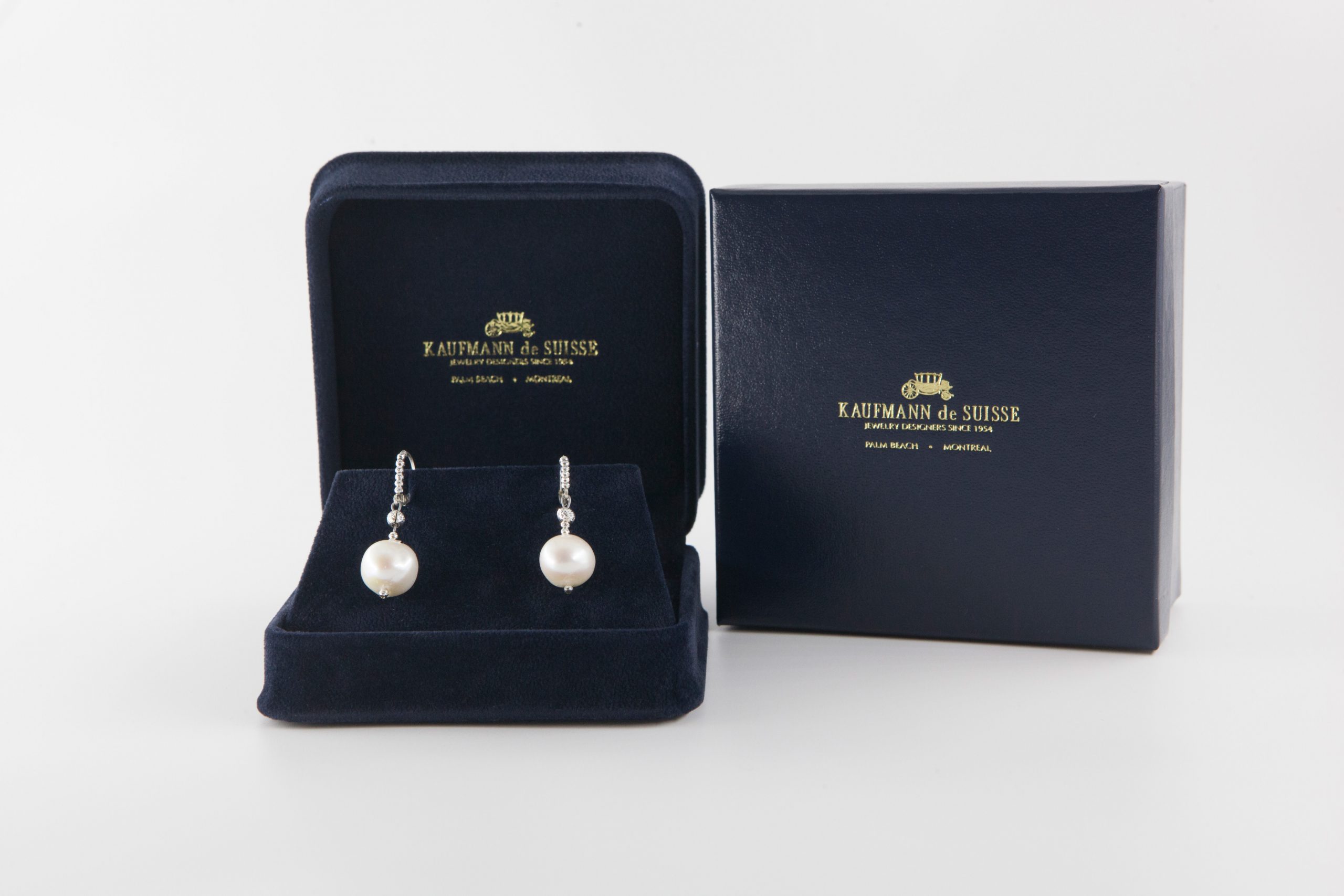 Freshwater Cultured Single Pearl Dangle Earrings with Silver Diamond Cut Beads
