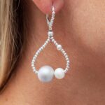 Grey and White Pearl Dangle Earrings with Sterling Silver Diamond Cut Beads